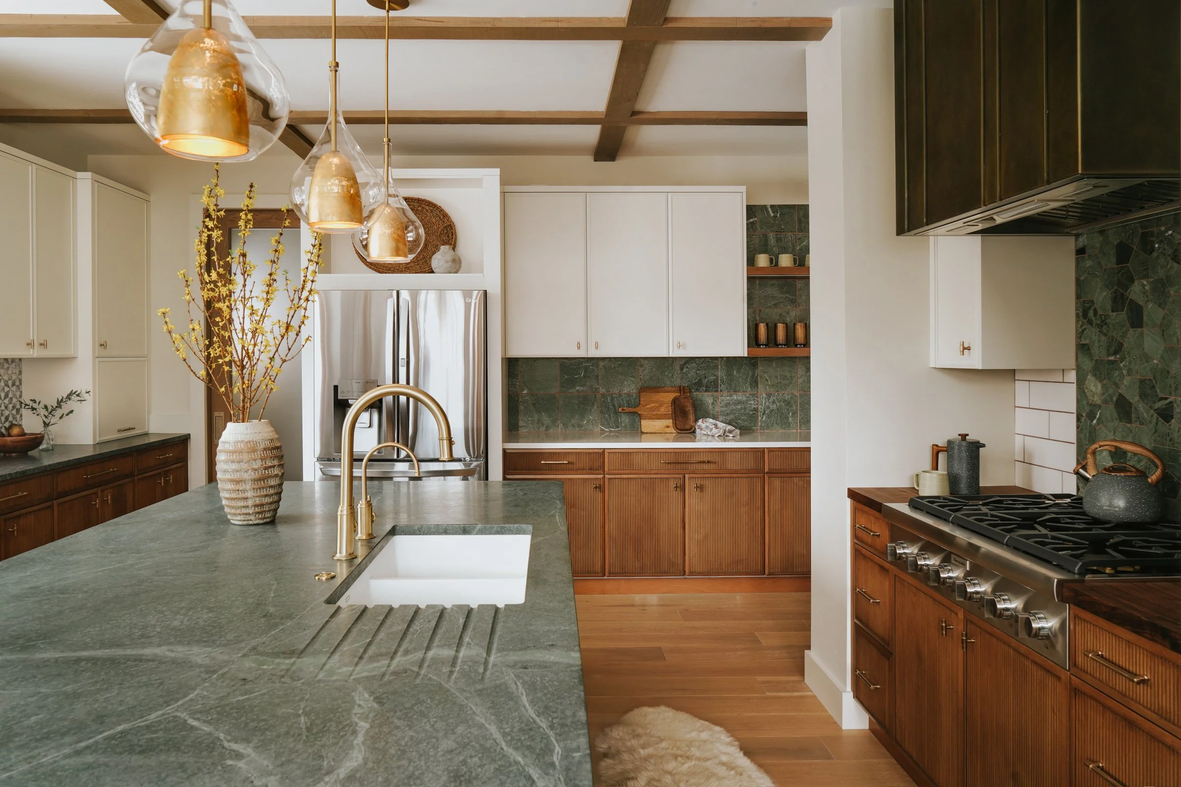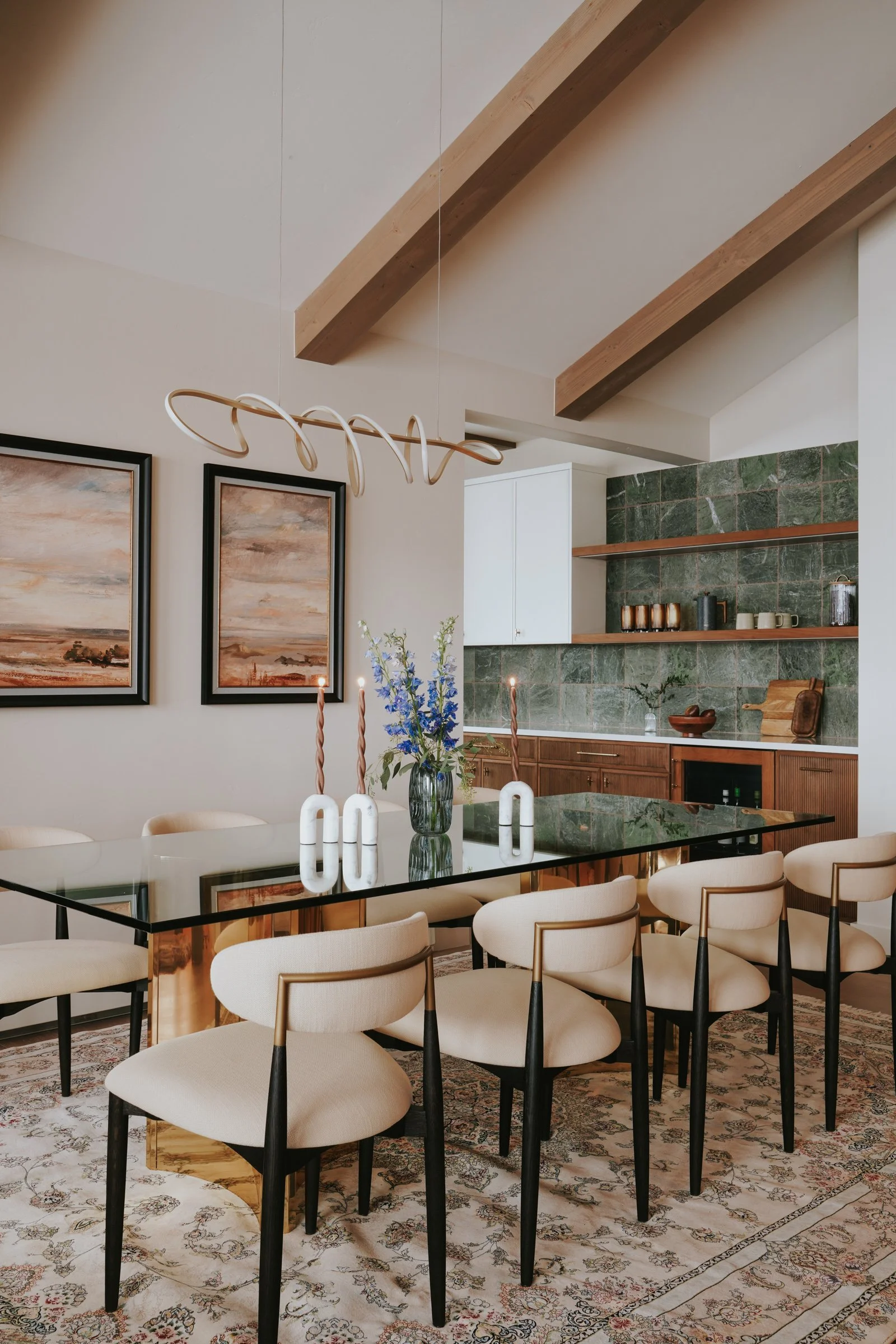 The result is a collected, livable, and quiet retreat to return home to. It is also equipped with a chef’s kitchen and room to gather 20+ guests to share dinner and stories of their travels.